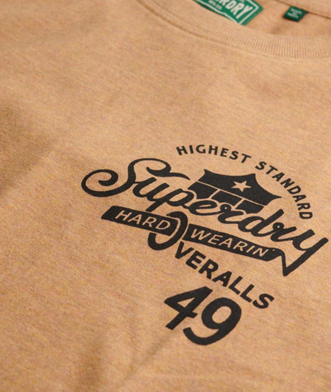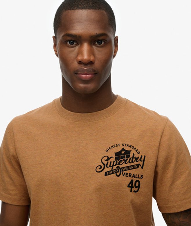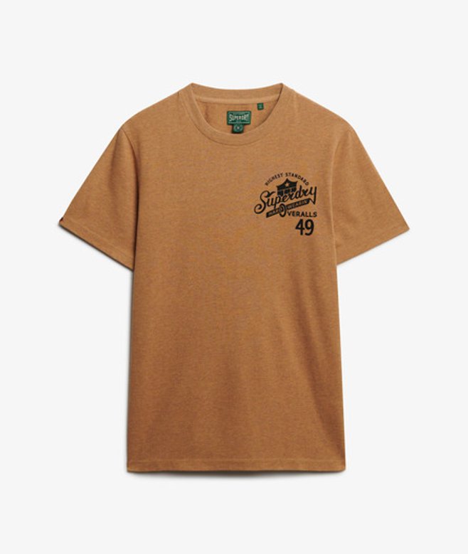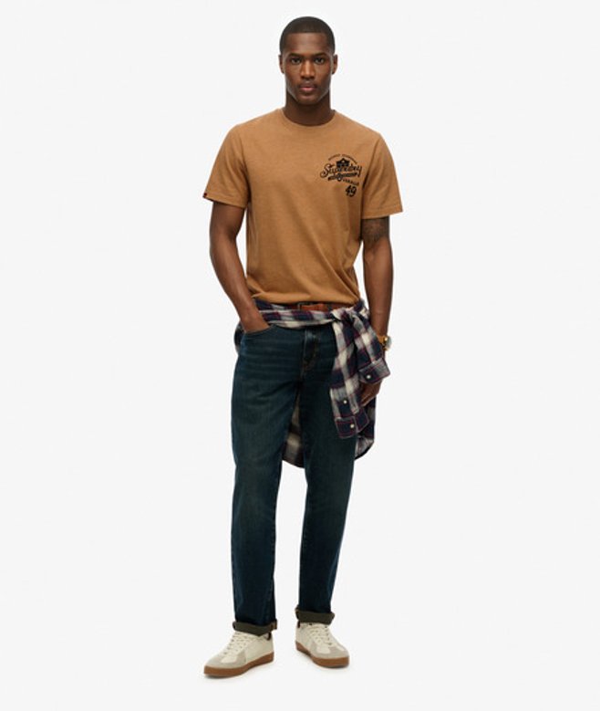Go for your normal size Crew neckline and short sleeves Printed graphic on the chest The Vintage Workwear Relaxed T-Shirt offers a contemporary reimagining of rustic workwear style, bringing a nostalgic feel to your wardrobe essentials.