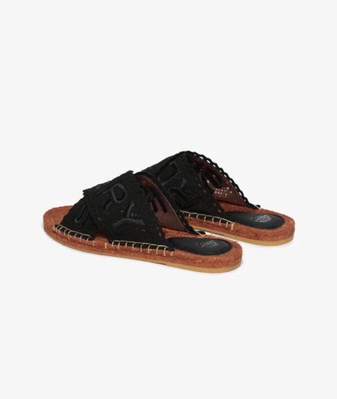 Superdry Women's Espadrille Cross Strap Sliders Black / Black Lace