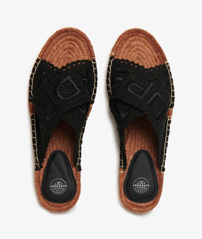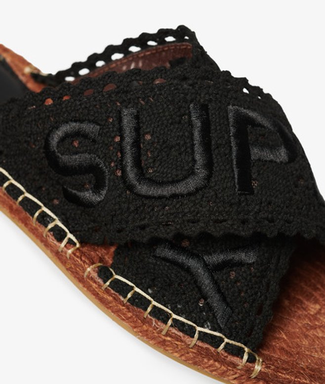 Superdry Women's Espadrille Cross Strap Sliders Black / Black Lace | ricciano UNITED KINGDOM