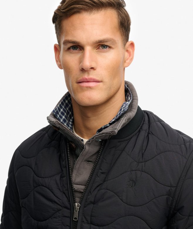 Go for your normal size Zip fastening with ribbed trims Two external pockets with a light padding throughout Embroidered logo on the chest Signature badge on the sleeve Our Military Liner Jacket is the perfect layer for the changing seasons.