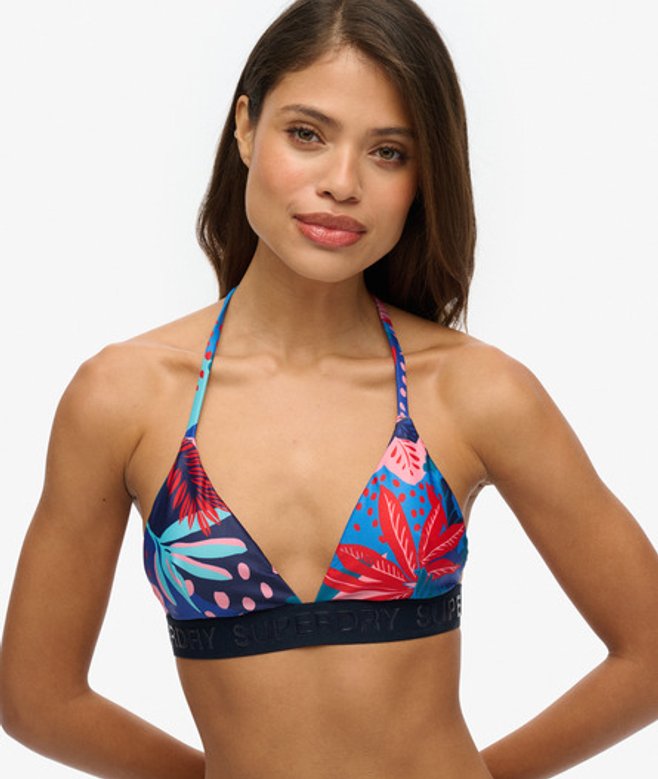 Superdry Women's Logo Triangle Bikini Top Blue / Tropical Stencil Blue Print