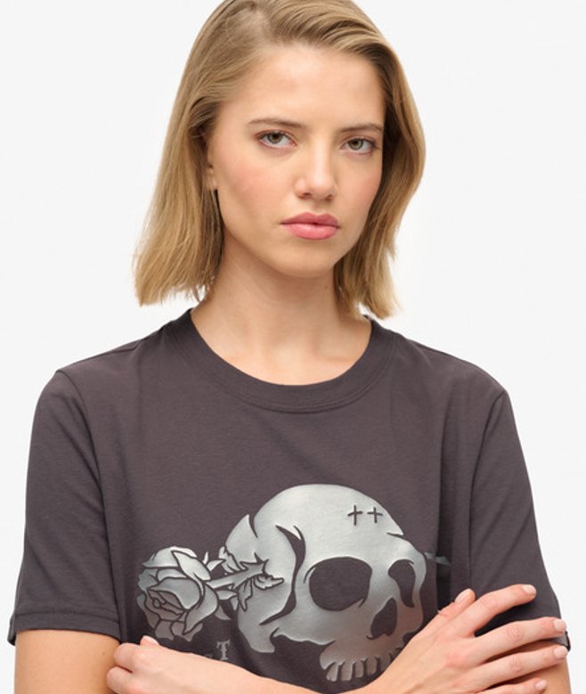 Superdry Women's Super Skull T-shirt Grey / Rock Dark Grey