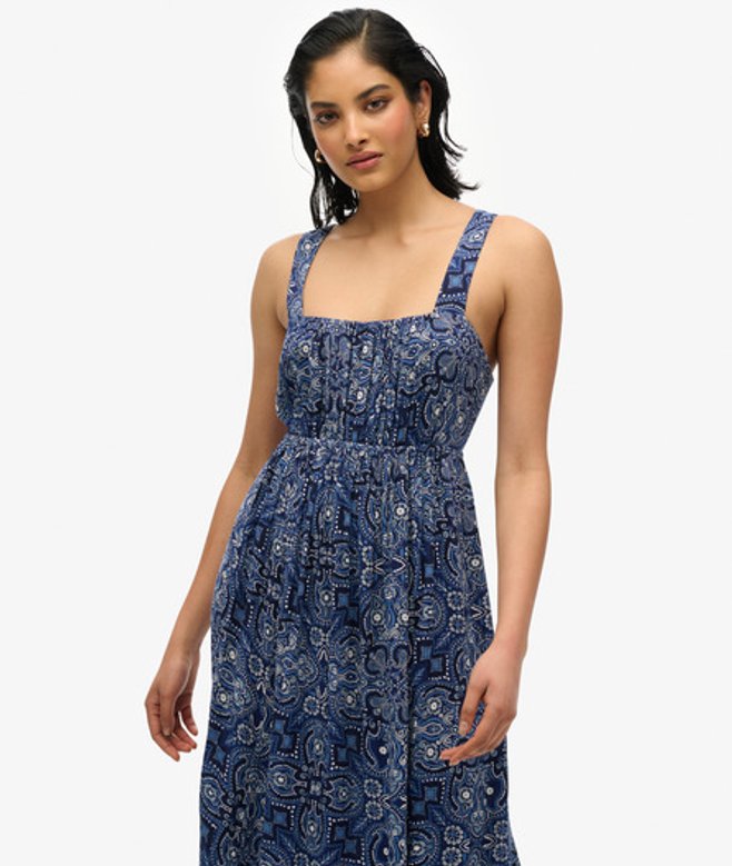 Superdry Women's Printed Tie Back Maxi Dress Navy / Paisley Bandana Navy