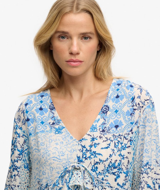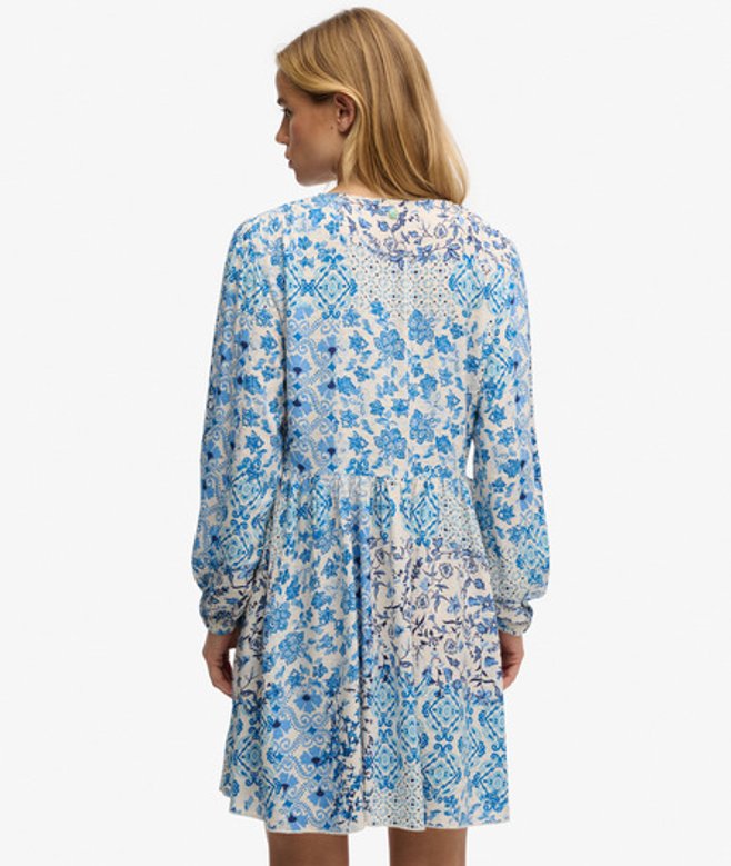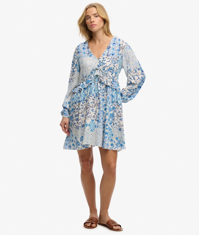 Superdry Women's Woven Tiered Mini Dress Blue/cream / Blue Beach Geo