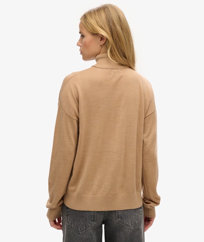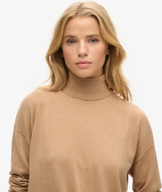 Superdry Women's Merino Drop Shoulder Roll Neck Jumper Beige / Praline