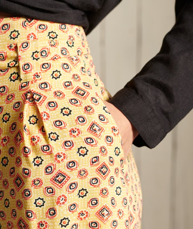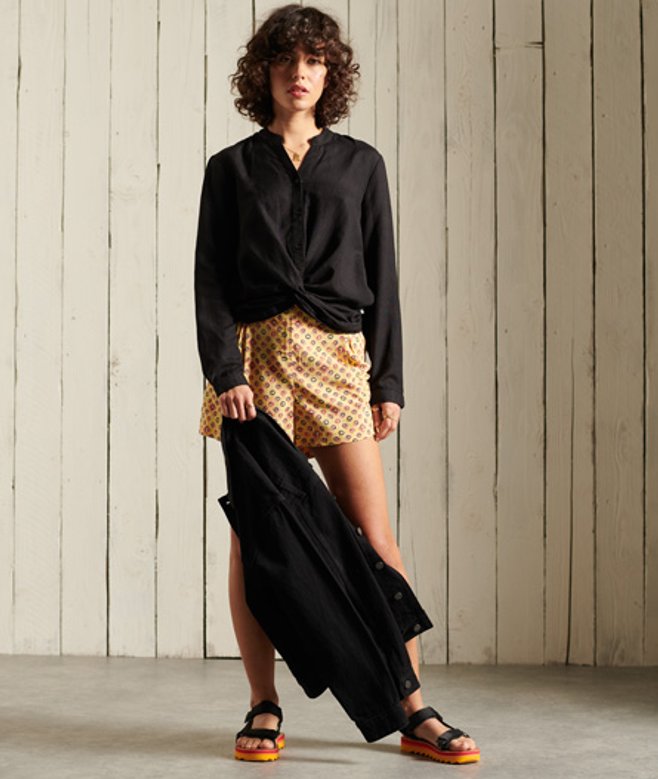 Superdry Women's Printed Paperbag Shorts Yellow / Yellow Tile Aop