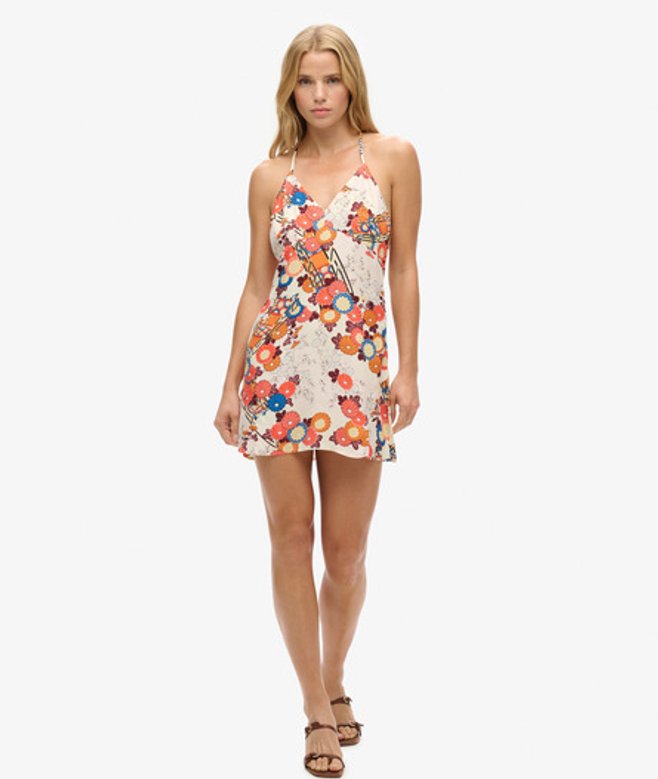 Superdry Damen Creme, Koralle und Blau Mini Trägerkleid Blumendruck, Größe: 44