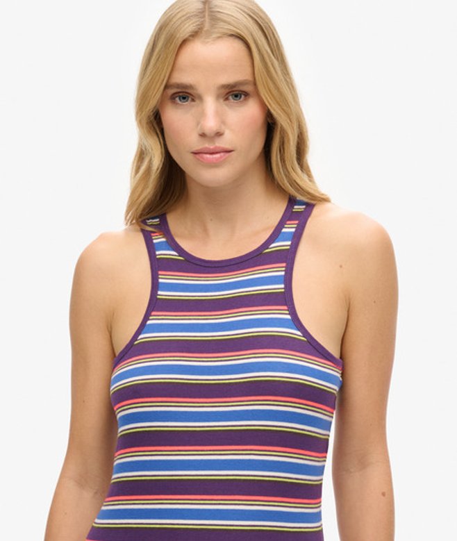 Unser gestreiftes Vintage Racer-Kleid bringt etwas Retro-Style in deine Freizeitgarderobe.