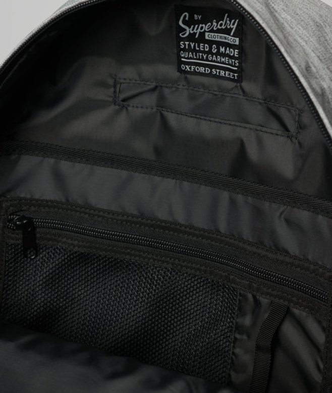Klassisches, vom Wandern inspiriertes Design Fassungsvermögen: etwa 18 l Tragegriff oben Reißverschlussfach Unteres Fach mit Reißverschluss Zwei Seitentaschen Rückenpartie gepolstert und belüftet Verstellbare Schulterriemen mit belüfteter Polsterung Laptopfach innen Innenfach mit Reißverschluss Aufgesticktes Superdry Logo Superdry Logoaufnäher am Schulterriemen H 45 cm x B 30,5 cm x T 13 cm