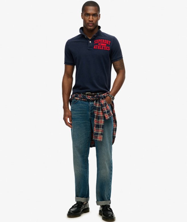 Superdry Herren Marineblau und Rot Vintage Athletic Polo Shirt, Größe: M