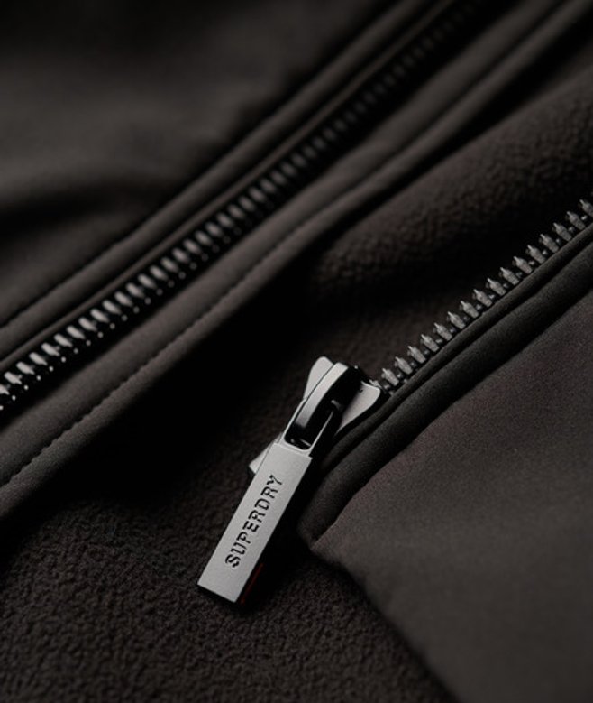 Wähle deine normale Größe Kapuze mit elastischem Kordelzug Gerippter Kragen Reißverschluss Drei Reißverschlusstaschen Verstellbare Bündchen mit Klettverschluss Saum mit elastischem Kordelzug Zwei aufgesetzte Taschen innen Rumpf und Ärmel mit Fleecefutter Aufgestickte Logos