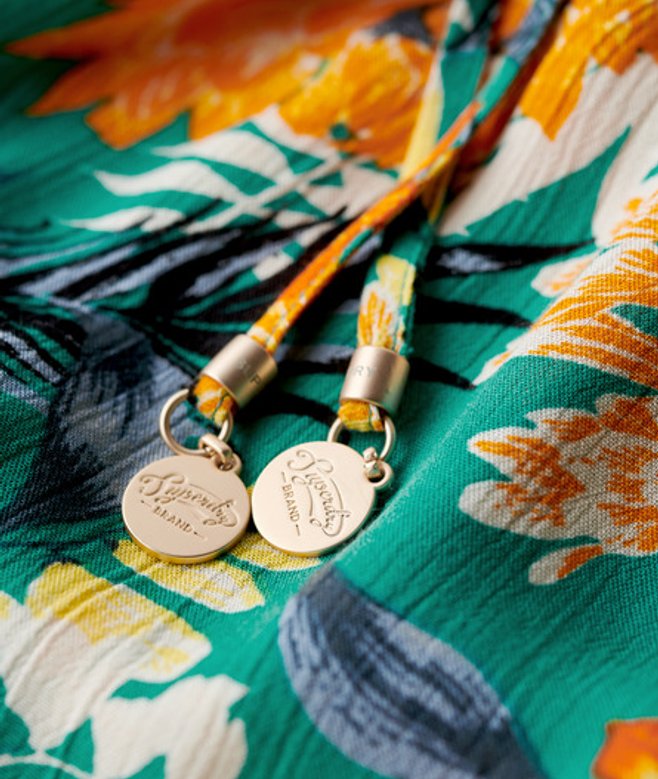 Wähle deine normale Größe Verstellbare Spaghettiträger Zwei unsichtbare Seitentaschen Spitzendetails Nackenhalter zum Binden mit Logo-Quasten Superdry Metallknopf