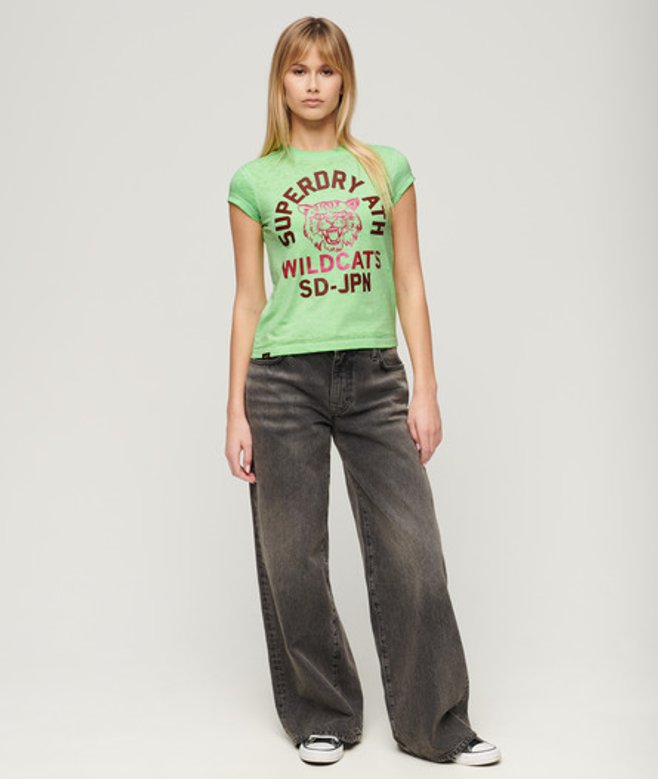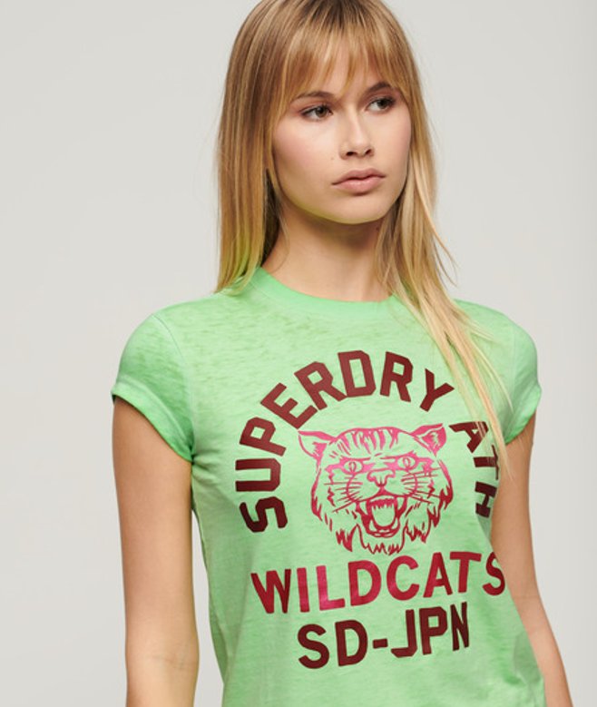Superdry Damen Varsity T-shirt in Ausbrenneroptik Grün | ricciano DEUTSCHLAND