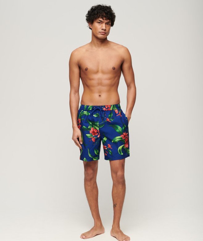 Superdry Herren 17-Zoll Badeshorts aus Recyceltem Material mit Hawaii-print Blau