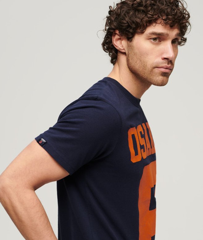 Superdry Herren Marineblau und Orange Osaka 6 T-Shirt Mit Grafikdruck, Größe: L | ricciano DEUTSCHLAND