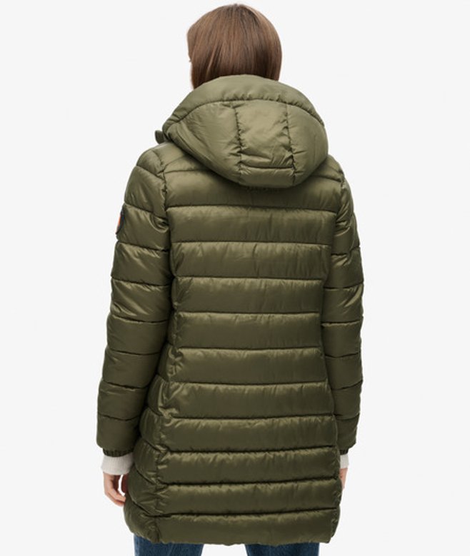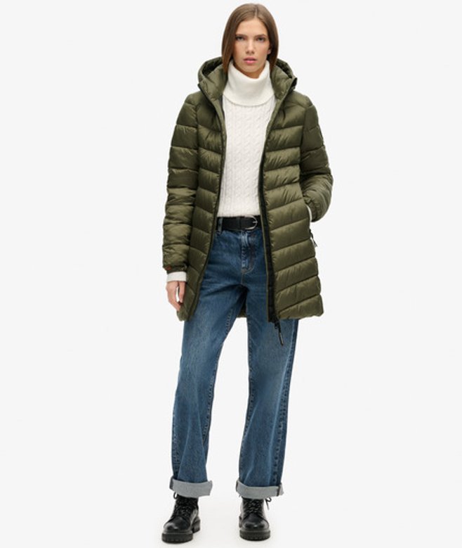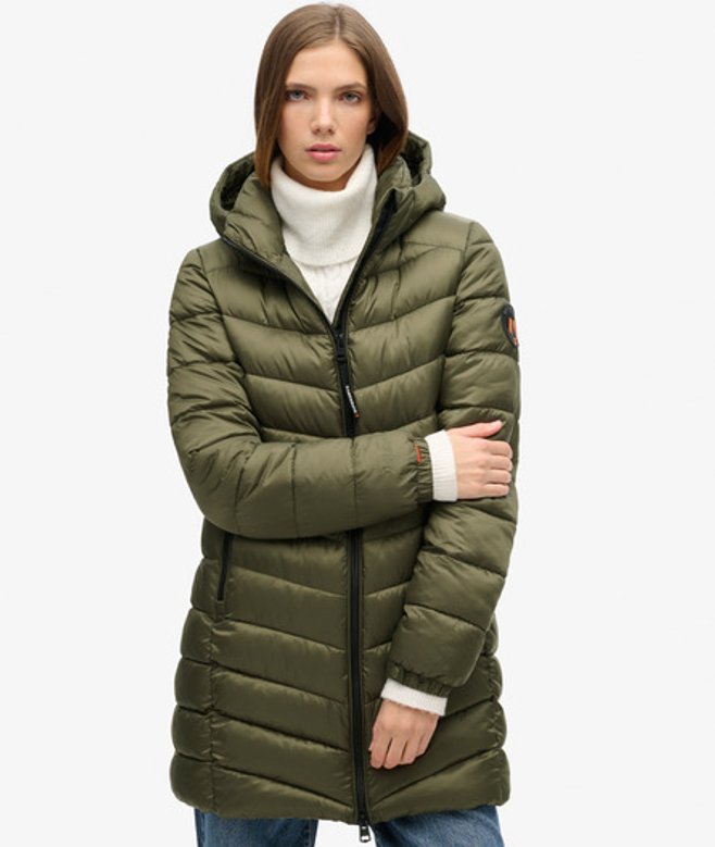 Superdry Damen Grün Fuji Mittellange Steppjacke mit Kapuze, Größe: 38