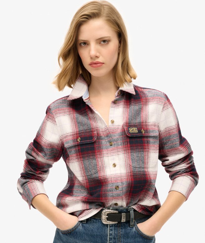 Superdry Damen Flanellhemd mit Holzfällerkaros Rot