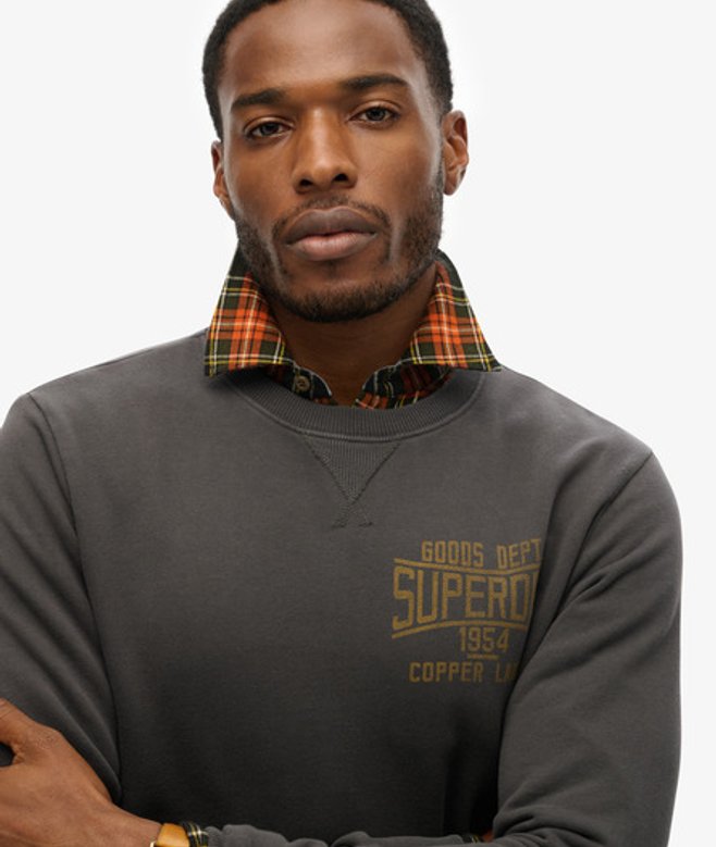 Superdry Herren Copper Label Workwear Grafik-sweatshirt mit Rundhalsausschnitt Schwarz