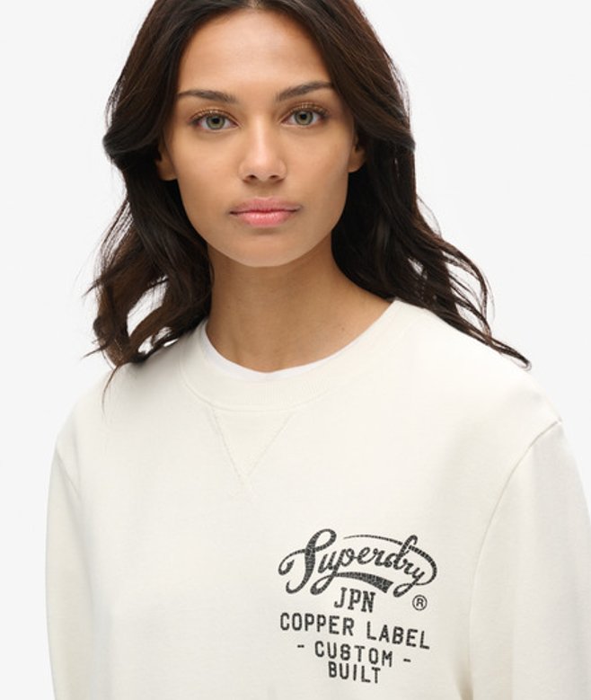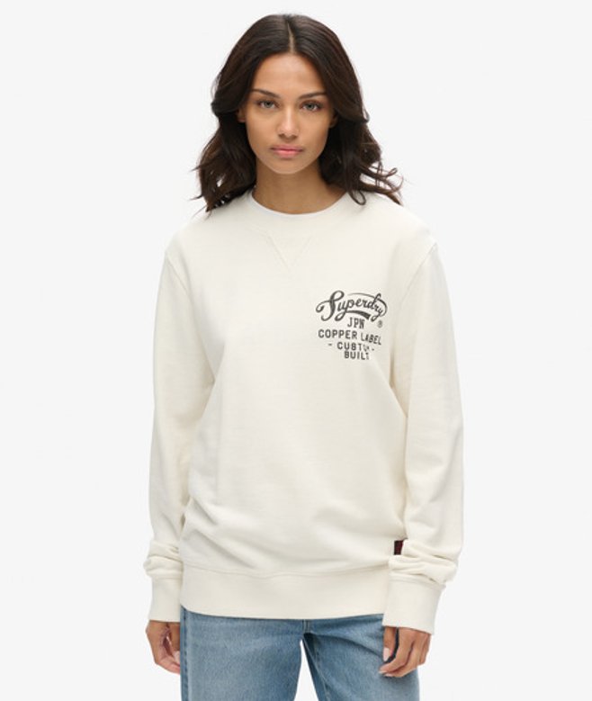 Superdry Damen OverGröße Copper Label Sweatshirt mit Rundhalsausschnitt Creme