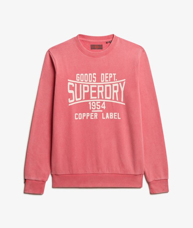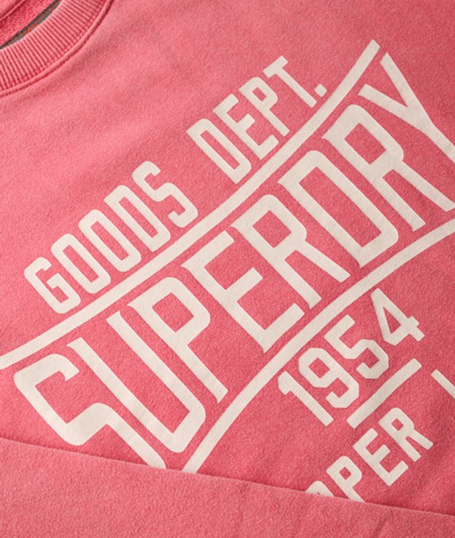 Wähle deine normale Größe Gerippte Abschlüsse an Rundhalsausschnitt, Ärmelbündchen und Saum Schweres Loopback-Material Charakteristisches Etikett an den Bündchen Großer Grafikprint im Brustbereich Klassisches Superdry.