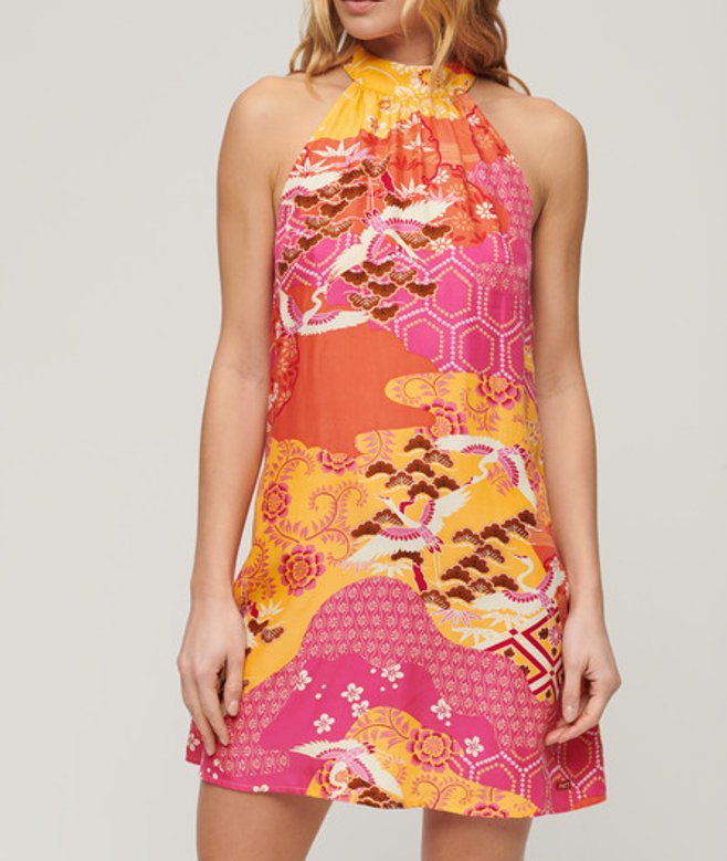 Superdry Women's Ärmelloses Minikleid mit Print Gelb
