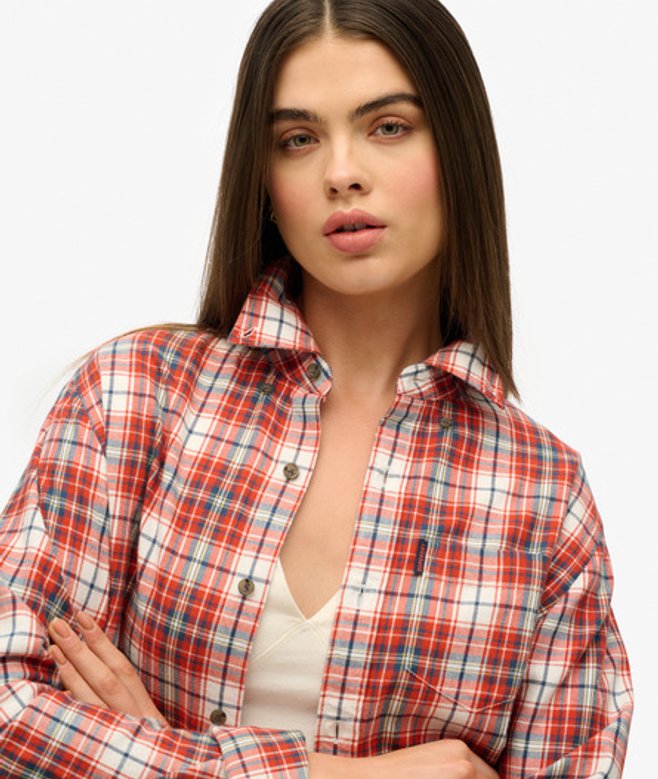 L passend für UK 6-8, EU 34-36, US 2-4 XL passend für UK 10-12, EU 38-40, US 6-8 XXL passend für UK 14-16, EU 42-44, US 10-12 Knopfverschluss und geknöpfte Manschetten Durchgehendes Karomuster Brusttasche mit Logoetikett Das Vintage Karohemd ist ein zeitloses Basic, das sich nahtlos in deine authentische Garderobe einfügt.
