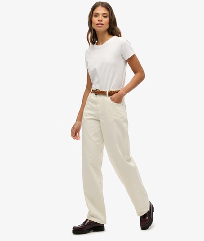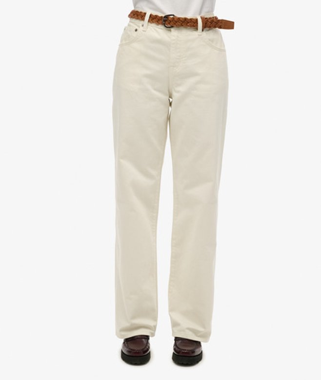 Superdry Damen Jeans mit Weitem Bein und Mittlerer Leibhöhe Weiß