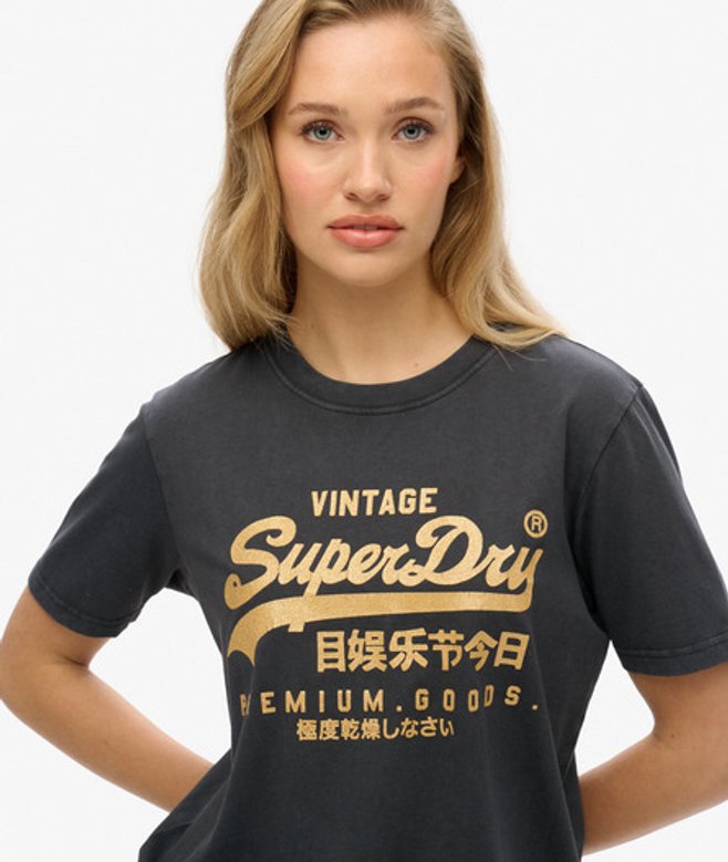 Superdry Women's Lässiges Vintage T-shirt mit Metallic-logo Schwarz