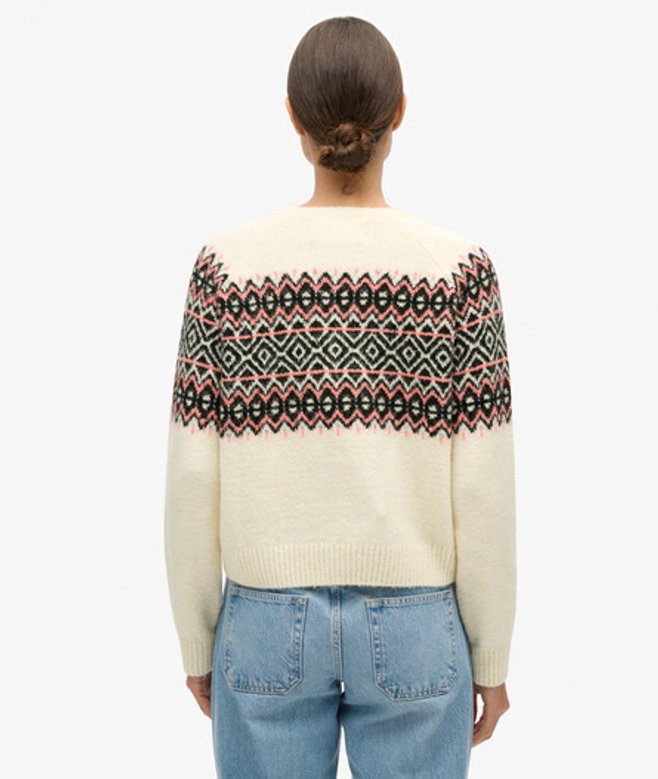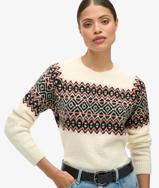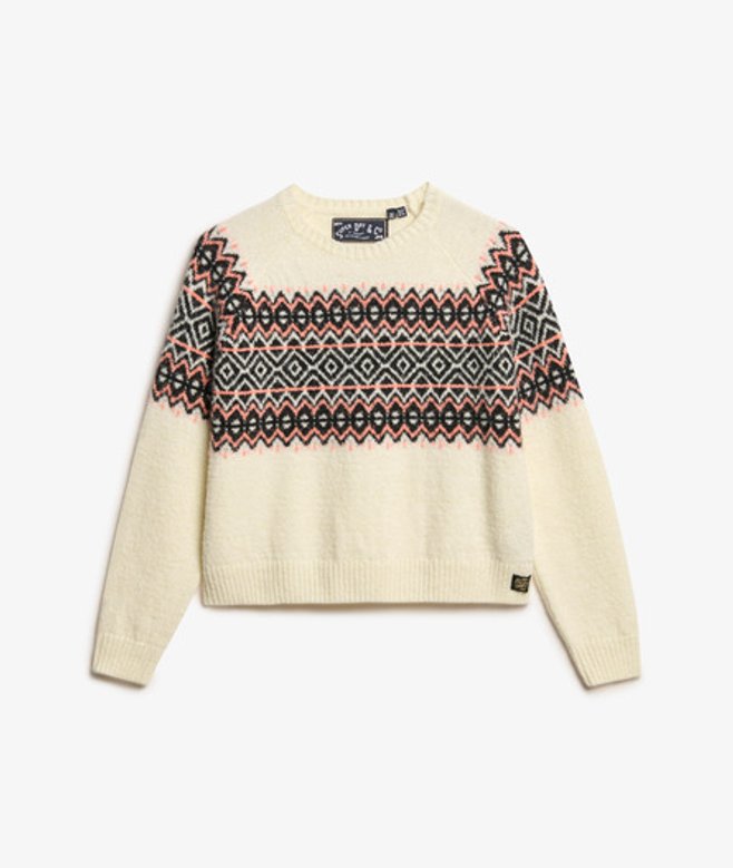 Superdry Women's Rundhalspullover mit Norwegermuster Creme