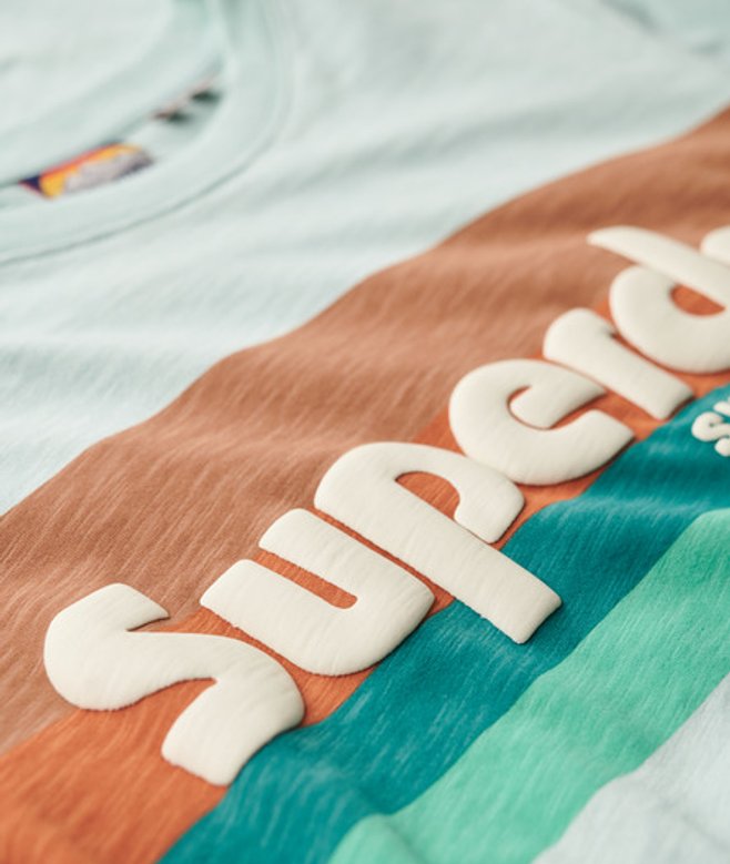 Wähle deine normale Größe Gerippter Rundhalsausschnitt aus Jersey Strukturierter Schriftzug im Brustbereich Wir präsentieren das Lässige Terrain T-Shirt mit Streifen und Logo.