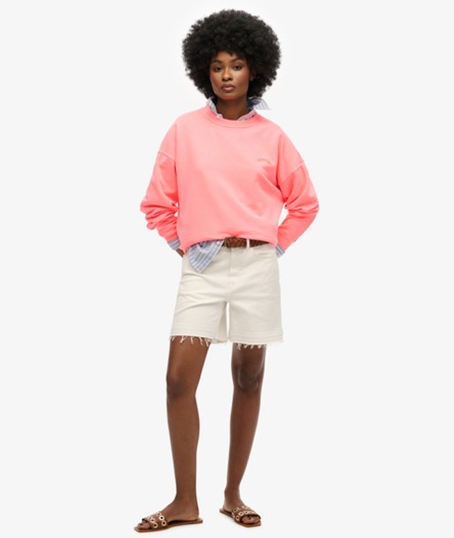 Superdry Damen Essential Logo Relaxed Sweatshirt mit Rundhalsausschnitt Cream