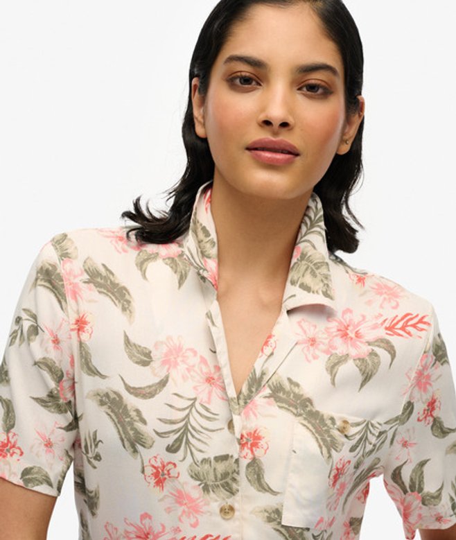Kastige Passform - locker und fließend geschnitten für mehr Bewegungsfreiheit Ein Button-Down-Kragen Kurze Ärmel und eine Brusttasche Charakteristisches Etikett am Saum Mit unserem Beach Resort Hemd sorgst du für Urlaubsstimmung.