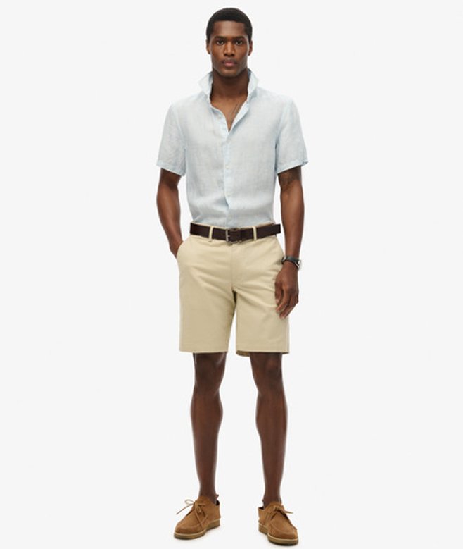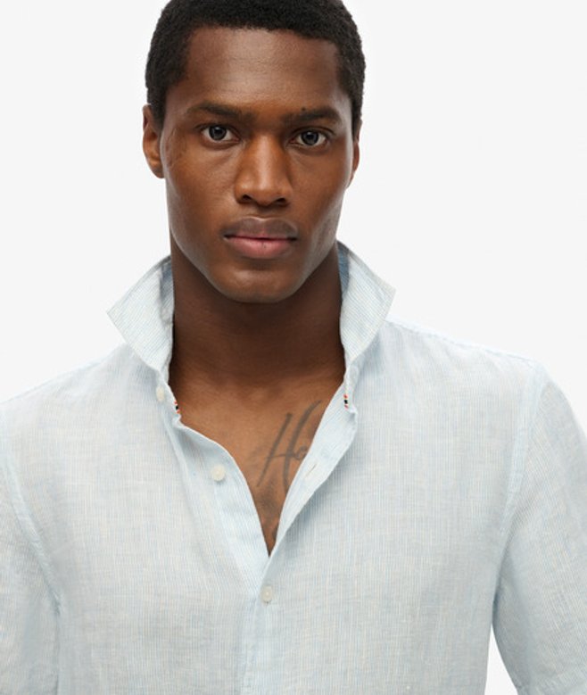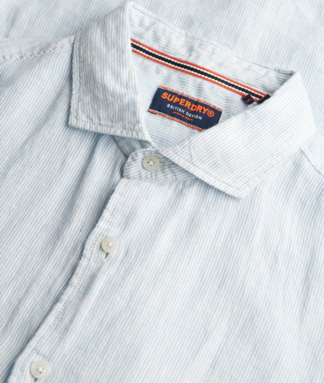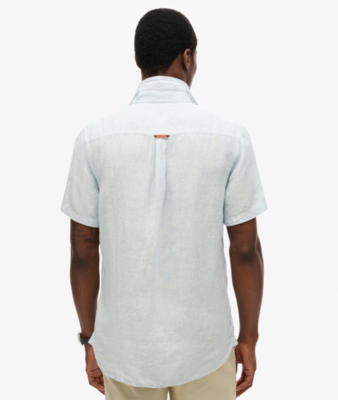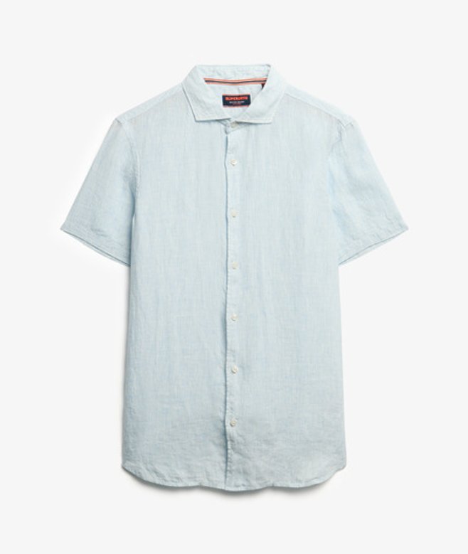 Superdry Herren Vacation Hemd mit Kurzen Ärmeln aus Leinen Light Blue