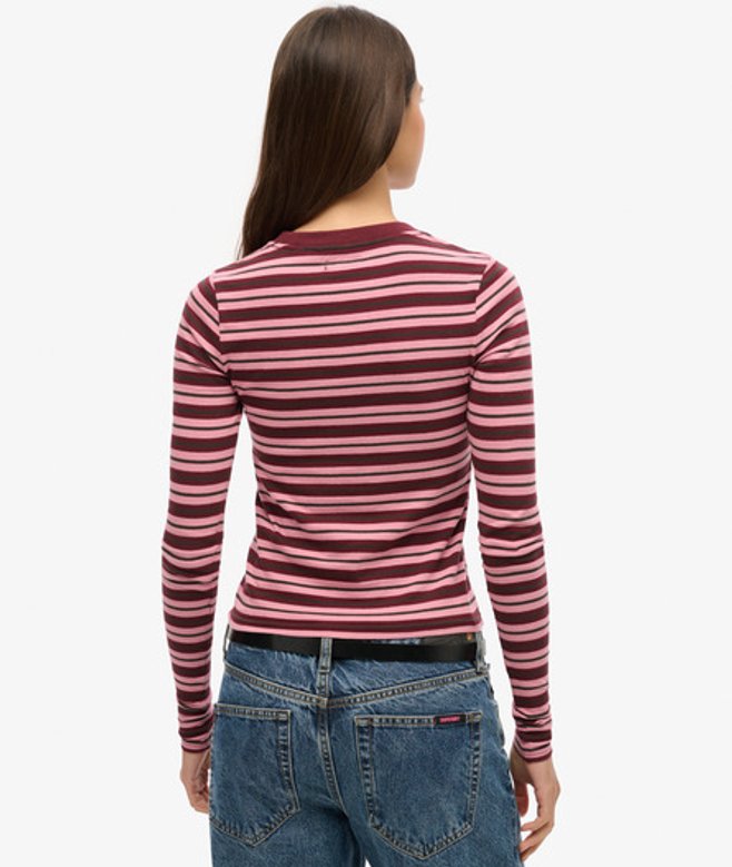 Superdry Femme Haut Rayé à Manches Longues Rose | ricciano FRANCE