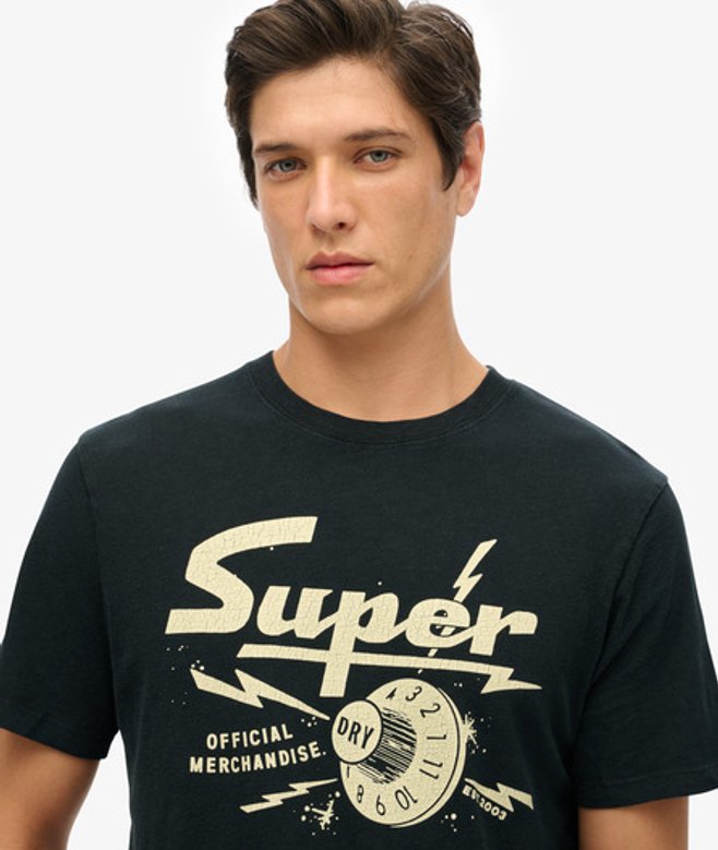 Superdry Homme Imprimé T-Shirt Graphique Retro Rocker, Noir,