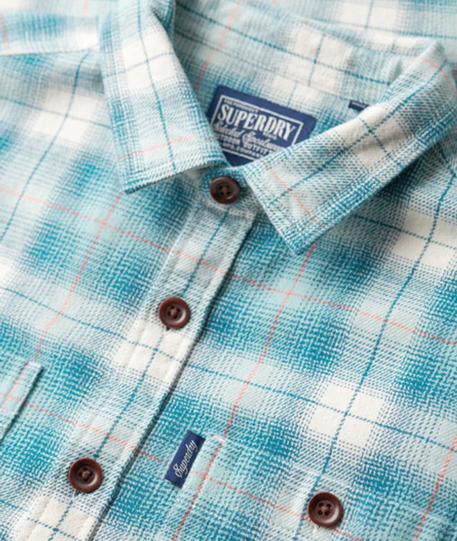 Choisis ta taille habituelle Motifs à carreaux tissés Col classique Fermeture boutonnée Poignets boutonnés Deux poches poitrine Écusson signature Superdry