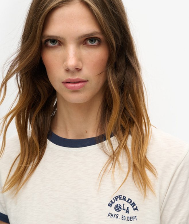 Coupe slim pour un look ajusté Modèle contrasté Col ras-du-cou Liseré contrasté au col et aux manches Manches courtes Imprimé sur la poitrine Étiquette au niveau de la couture Imprimé sur la poitrine avec logo inspiré du beach-volley