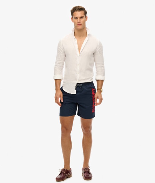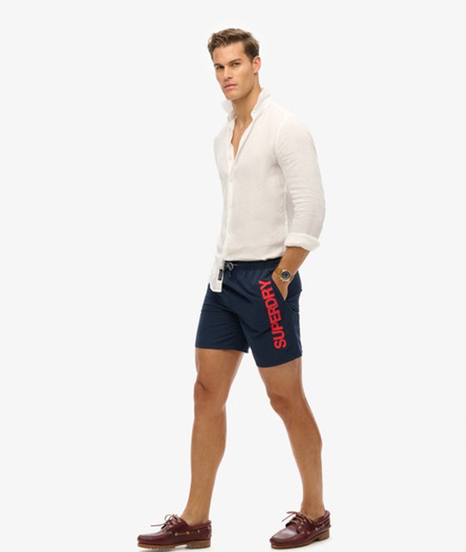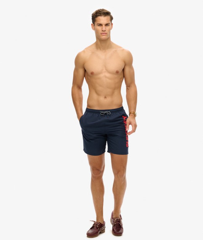 Superdry Homme Short de Bain de Sport Recyclé à Motif Longueur 43 cm Bleu Marine
