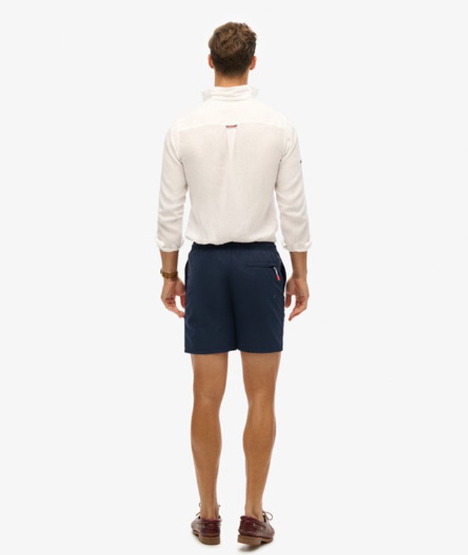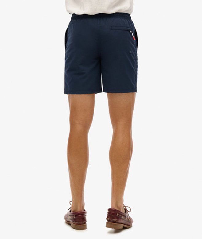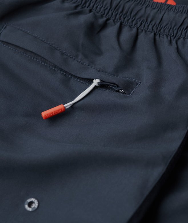 Choisis ta taille habituelle Taille élastique avec cordon de serrage Longueur: 43,2 cm Deux poches latérales Poche arrière zippée Doublure soutien intérieur en maille filet Logo Superdry