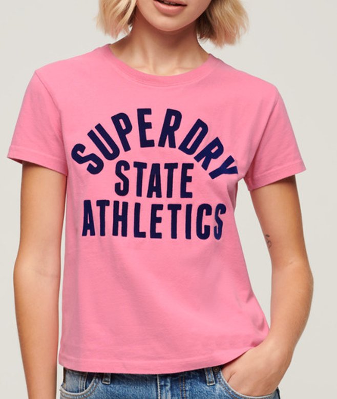 Superdry Femme Imprimée T-Shirt Ajusté Floqué Varsity, Rose, | ricciano FRANCE
