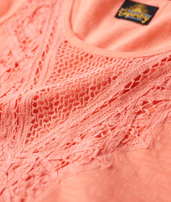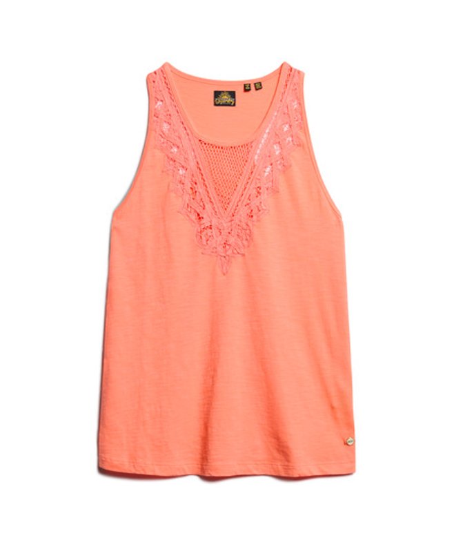 Superdry Dames Corail Débardeur en Jersey Dentelle,
