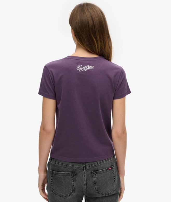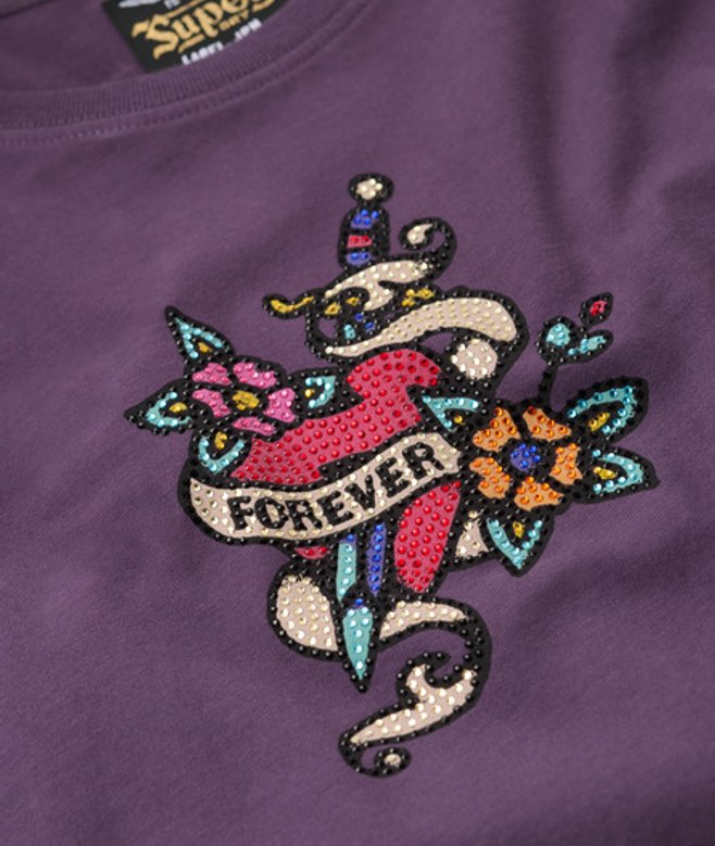 Superdry Femme Petit T-shirt Ajusté à Strass Effet Tatouage Violet
