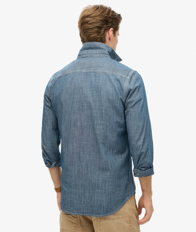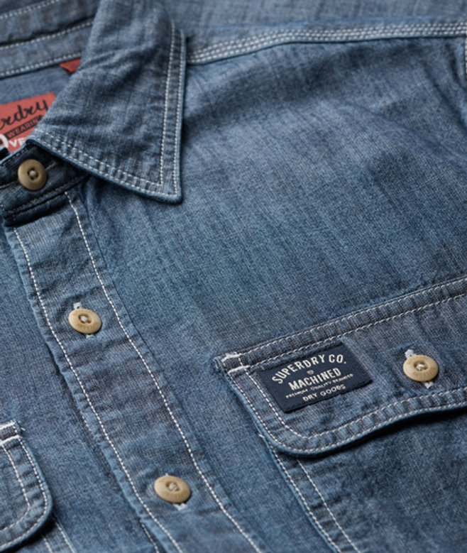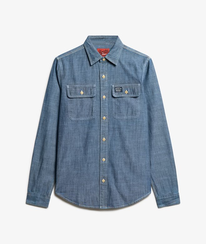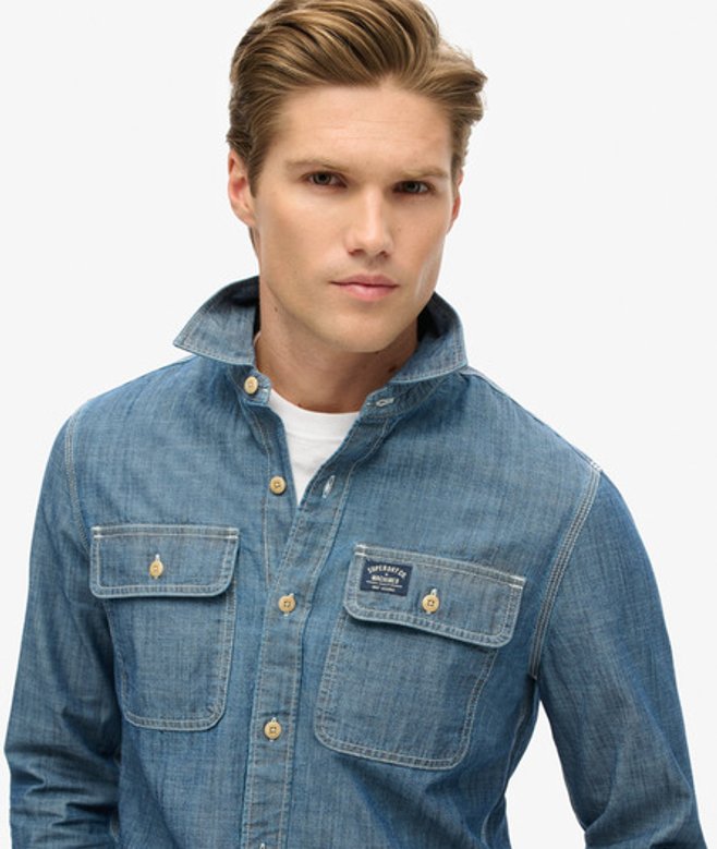 Superdry Homme Chemise à Manches Longues en Coton Workwear Bleu