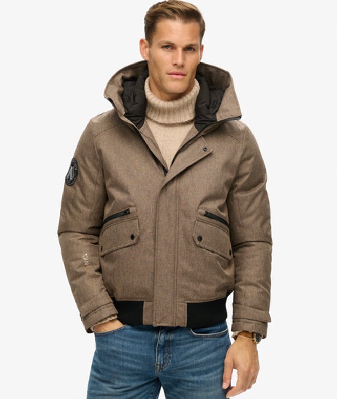 Superdry Homme Blouson Aviateur Matelassé City Tweed Beige