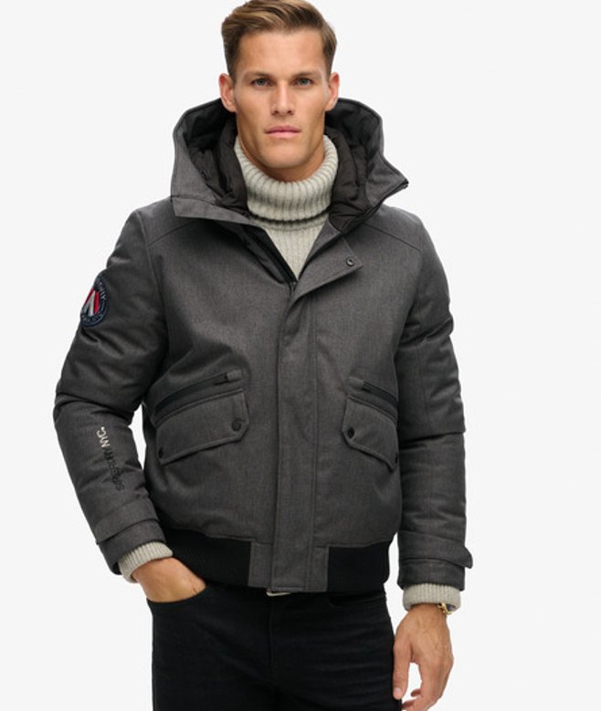 Superdry Homme Blouson Aviateur Matelassé City Tweed Gris Foncé