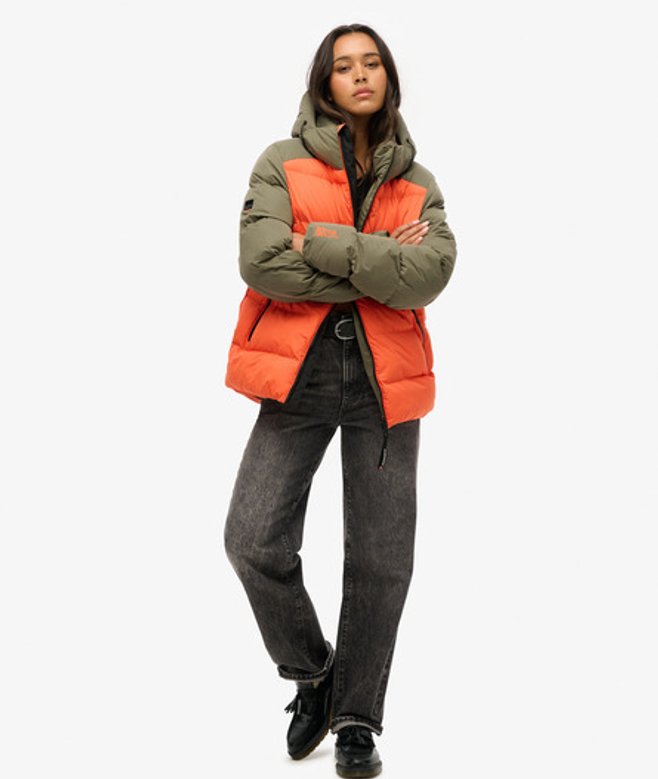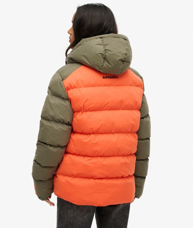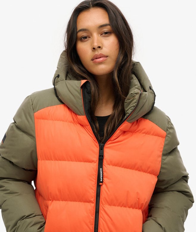 Superdry Femme Doudoune OverTaille Sport Colour Block Kaki/orange
