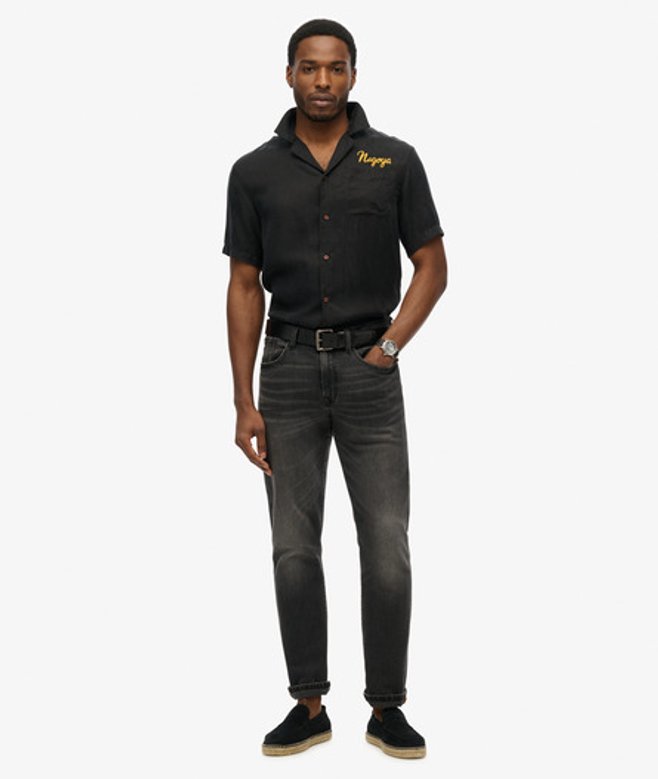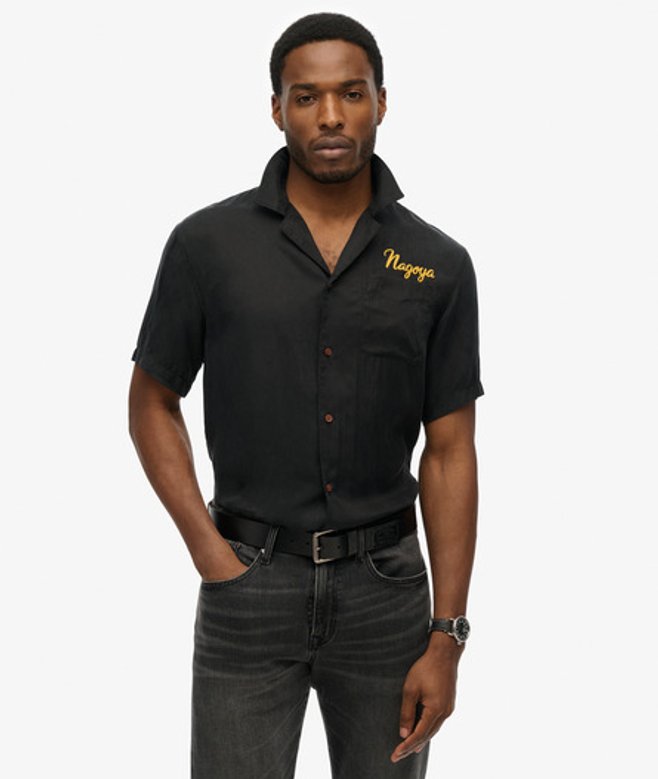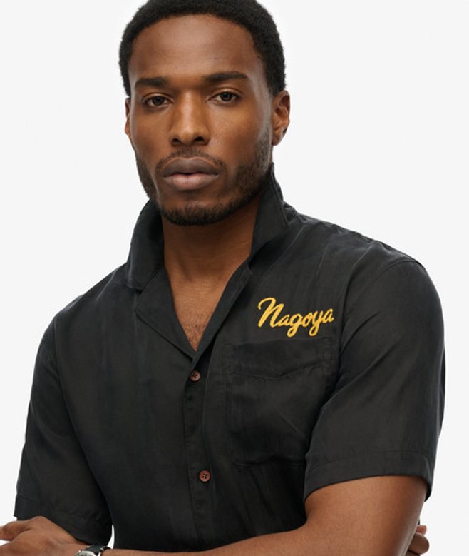 Choisis ta taille habituelle Col simple et manches courtes Fermeture boutonnée et poche poitrine Grand motif brodé dans le dos Texte signature brodé au-dessus de la poche Affirme ton style cette saison avec notre chemise Merchant Suika.
