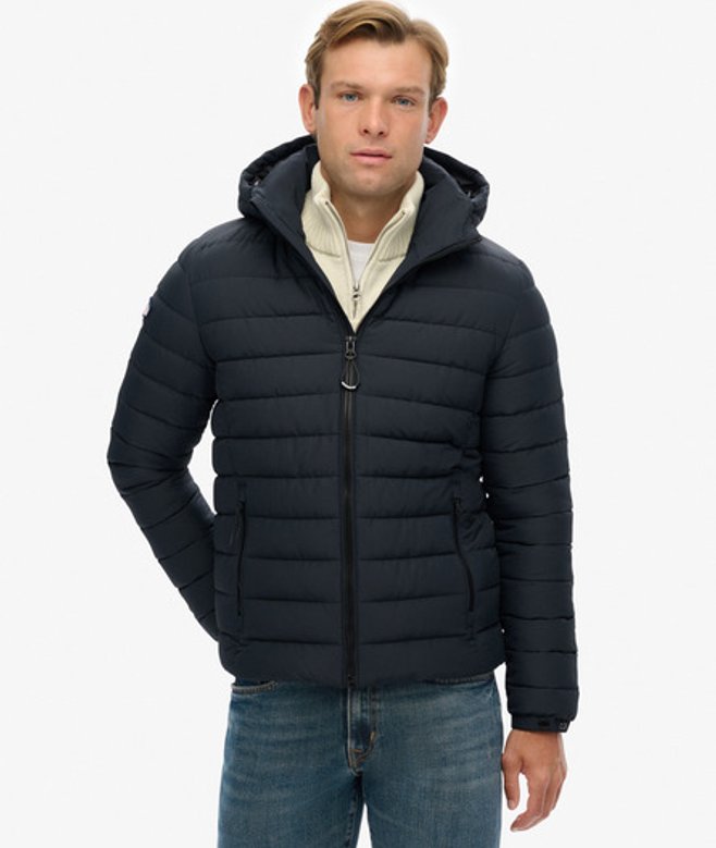 Coupe ajustée - conçue pour épouser le corps et offrir un look plus structuré Capuche et ourlet ajustables par cordon élastique Deux poches extérieures zippées et une poche intérieure en mesh Fermeture à glissière Poignets élastiqués Badge Superdry sur l'épaule droite La coupe minimaliste et élégante de la Doudoune Fuji à Capuche en fait une pièce incontournable de votre garde-robe.