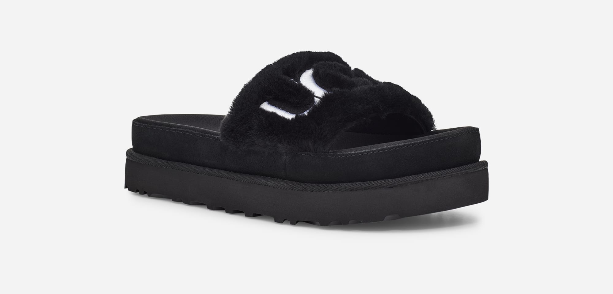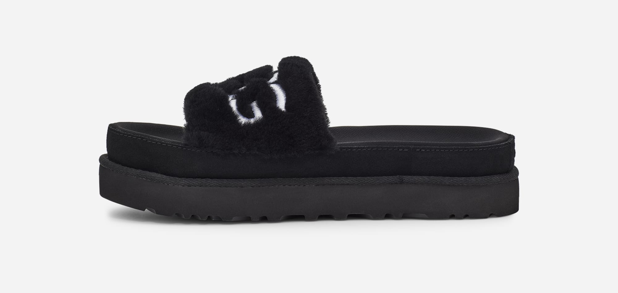 Featuring a logo-embellished fluff upper made from silky sheepskin, it harmonizes the trend-right aesthetics of an athletic slide with the luxurious wearing experience we're known for.