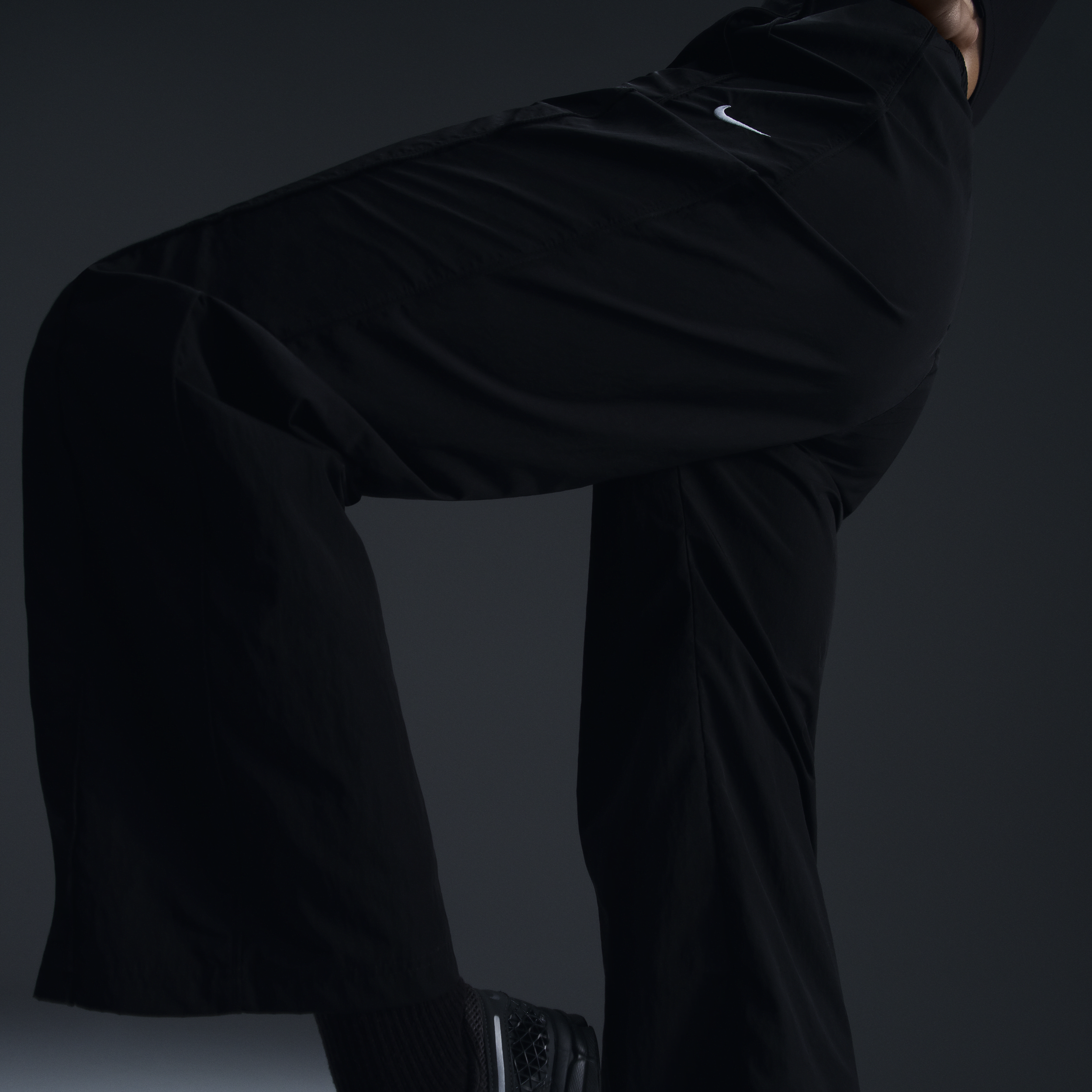 Pantaloni in tessuto a vita alta con bordo aperto Nike Windrunner – Donna - Nero